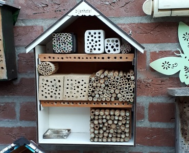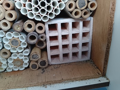 The guests are mainly mason bees, they don’t live in colonies, but instead, each female builds her own nest. This is preferably a tube (3 to 9mm) in which cells are built where the offspring can grow up.