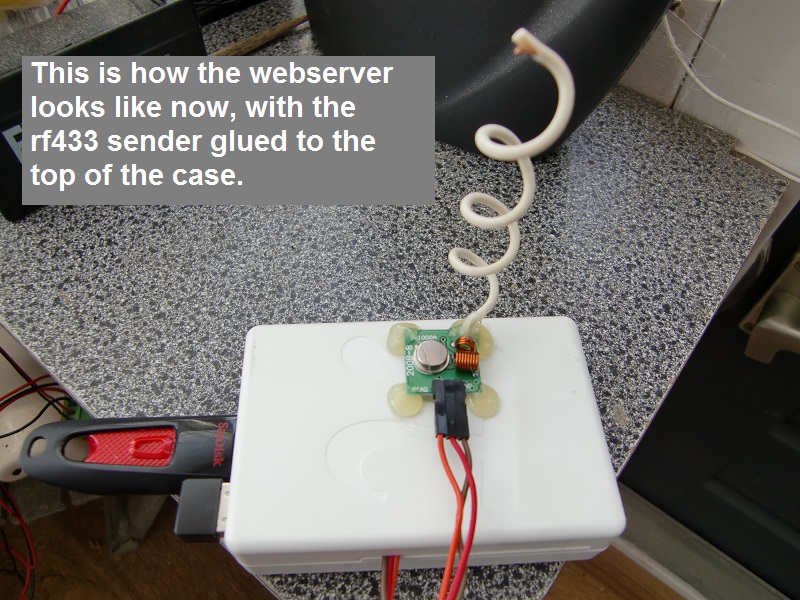 So I installed wiringPI and 422Utils on my raspberry. I also connected the former mentioned RFtransmitter (ebay) (pin4 vcc, pin6 gnd, pin 11 data) to the raspberry.