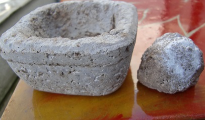 I started wit pressing a layer of the morter on the bottom, some 2 cm thick, and than i formed the upright sides. I tried to make the thickness even for each side so that the result will be fairly symetric. I did not make the side as high as the mold as this would make the un-molding more difficult.