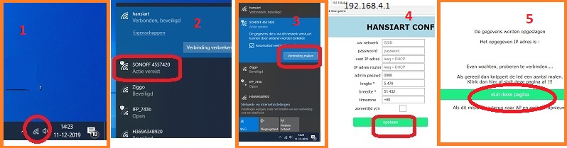 U kunt uw wifi netwerk selecteren in een lijst. Noteer het IP adres en het passwoord voor de schakelaar dat je hebt ingevuld.