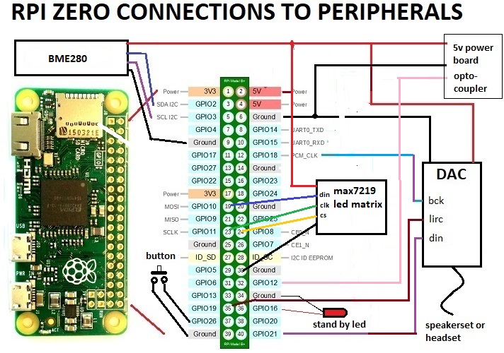 In my case i wanted to switch the power of the speakerset also. This means that i had to build a power supply board with a triac that can switch the main power. This is a technique i applied in some of my esp8266 projects. I soldered a board with a 5Volts DC power supply. There is a triac and an optocoupler that i connect to the gpio headers of the raspberry.