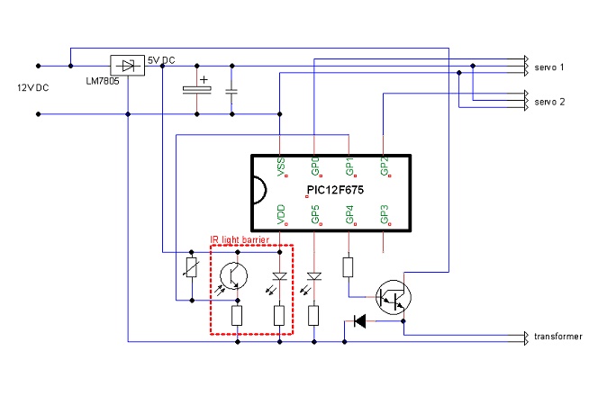 The programm does nothing more than checking the voltage on pin1, if this get higher than the refference, the servo1 is turned. This closes the door, the rat is catched.