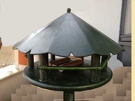 For the bottom I sawed a round plane out of the 18mm mdf. I rounded the edges with a mill. In the plane i made 6 pockets of 10mm deep. I measured the slope of the roof and sawed the broomstick in 6 pieces, each has one side straight and the other sawed under the measured slope.