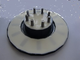 Next i designed and 3d- printed a mold for the positioning of the magnets on the disks. I fitted the mold on the disk and glued the carefully cleaned magnets in place. I removed the mold and used it to fit the magnets on the other disk the same way.