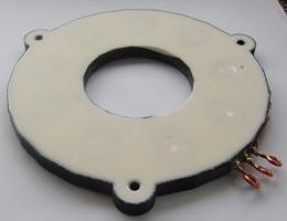 Next i could cast the mold with PU resin until the coils are slightly covered with resin. After hardening some sanding is done in order to make the stator completely flat.
